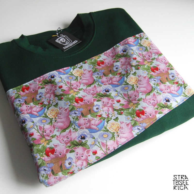 Sudadera verde Unisex Cerditos, combinada con tela 100% algodón (tejido suave).Todo nuestros productos son únicos, pueden ser parecidos pero nunca iguales (el estampado del tejido puede variar). Cuidado de la pieza: Lavar a máquina en agua fría y planchar a una temperatura media).