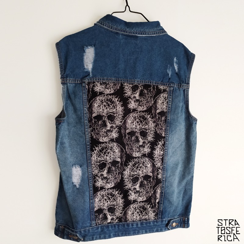 Chaleco Calaveras Agujas, combinado con tela 100% algodón (tejido suave). Todos nuestros productos son únicos, pueden ser parecidos, pero nunca iguales (el estampado del tejido puede variar).